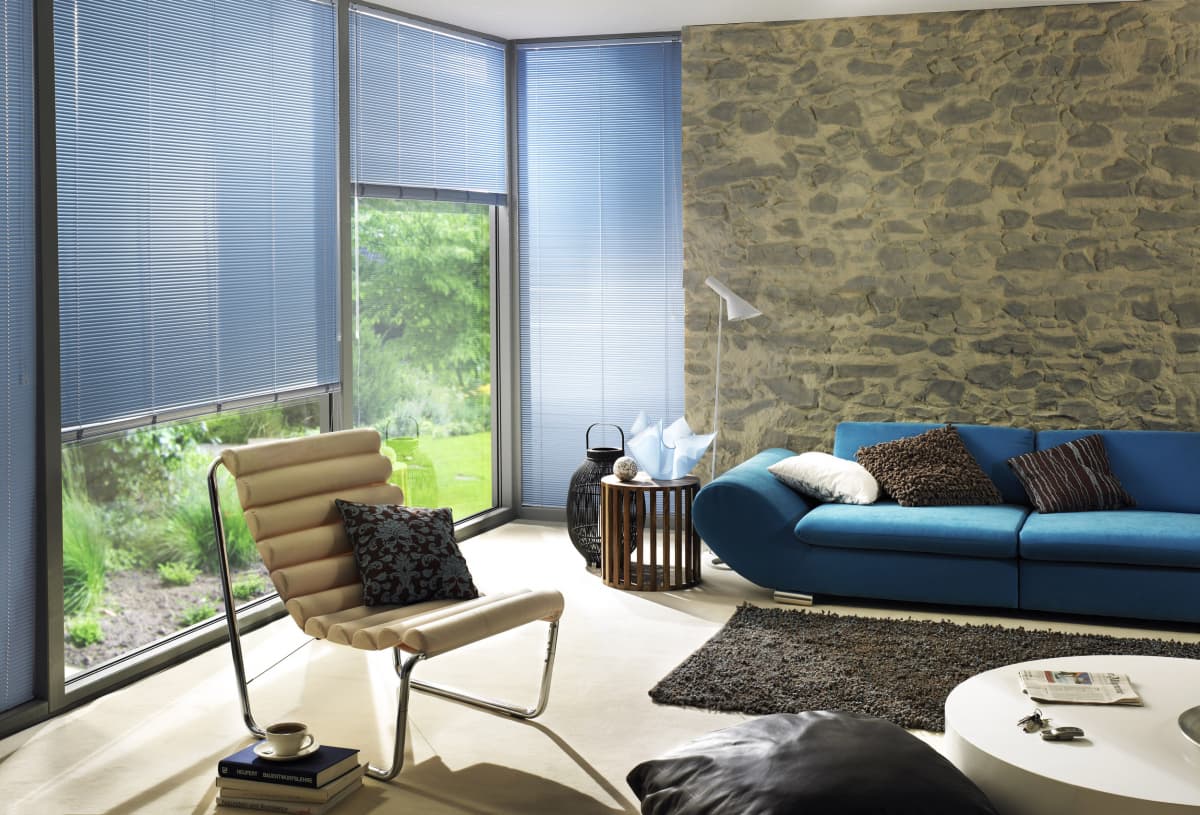 - Контроль освещения. Помогают создать идеальные условия для дневного сна и отдыха, блокируя яркий свет с помощью плотных тканей (блэкаут, димаут) или путем поворота ламелей.